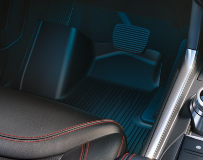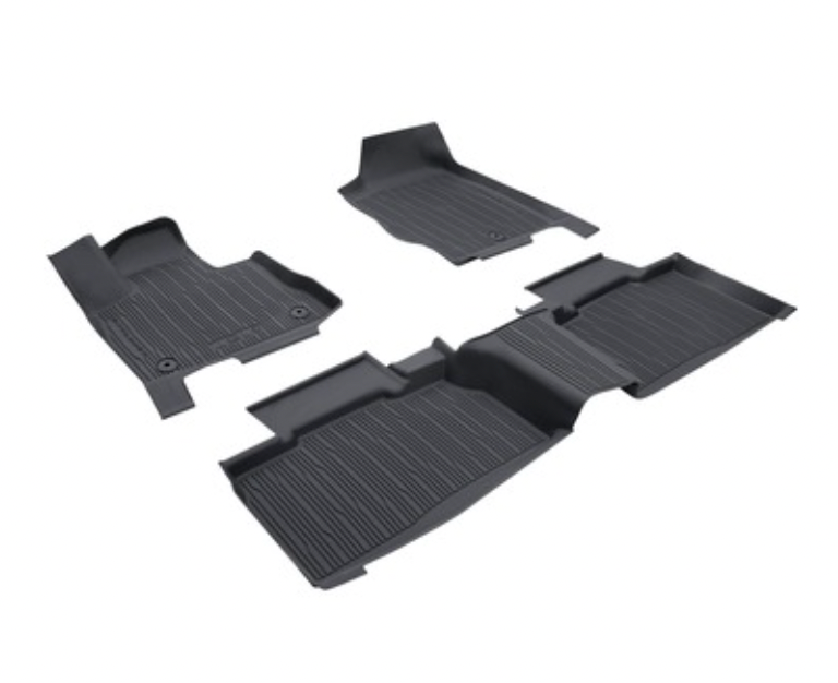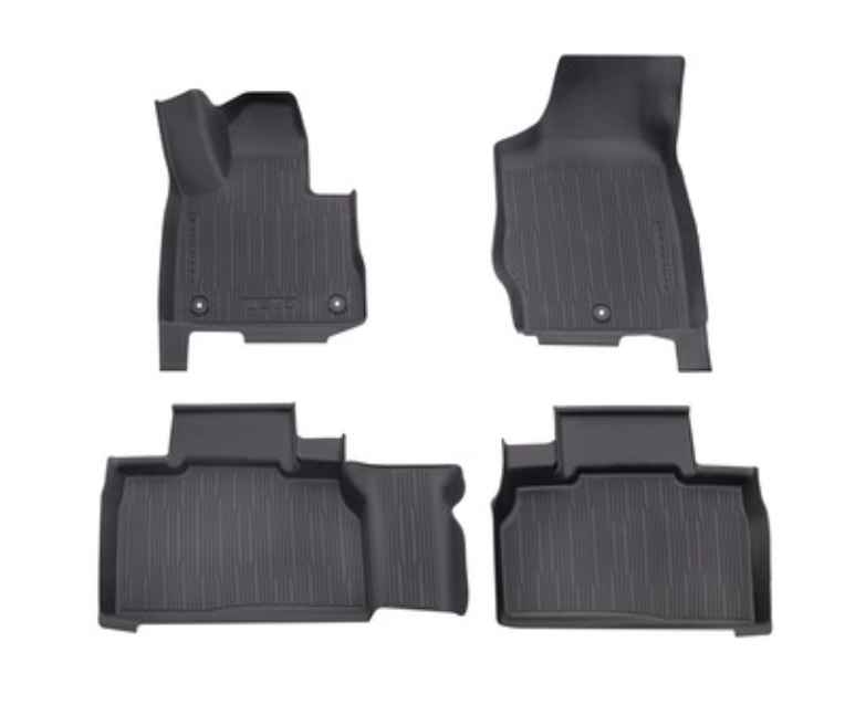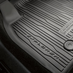 Sett med 4 stk. med Explorer-logo og fester på fører- og passasjersiden Opphøyde kanter beskytter teppet enda bedre mot smuss og fuktighet