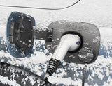 Når du lader kjøretøyet under iskalde vinterforhold, bidrar vinterdekselet for ladeporten til å beskytte kjøretøyets ladeport mot is, snø og smuss. Det fleksible myke gummidekselet sitter pent i ladeportens åpning.