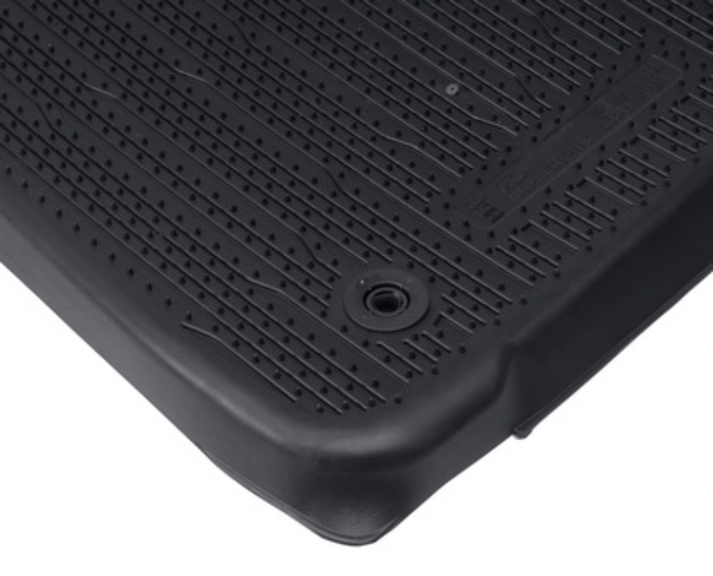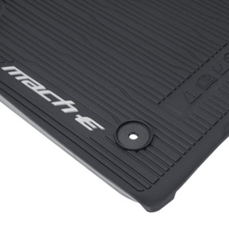 Sett med 3 stk. gummi gulvmatter med Mach-E logo på mattene foran og fester på fører- og passasjersiden. Pony-logo på matten bak.